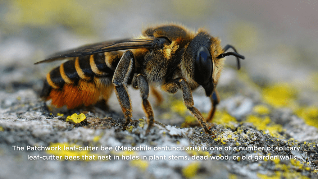 - Red mason bees and leafcutter bees nest in hollow stems (such as artichoke or sunflower), laying eggs that hatch the following spring.