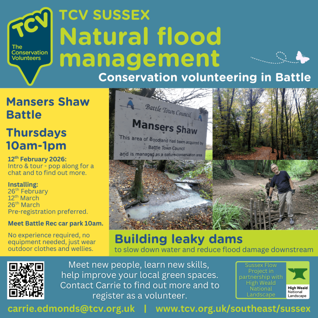 - Thursdays: Coming up! Leaky dams at Mansers Shaw in Battle.